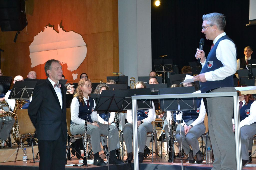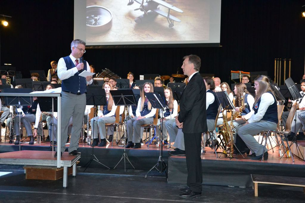 Danach spielte der Musikverein Wutöschingen unter der Leitung von Josep Mas Mestre ihr Konzert. Highlight war die Ehrung von 6 verdienten Musikern die jeweils 40 Jahre iin den Reihen des MVW sitzen: